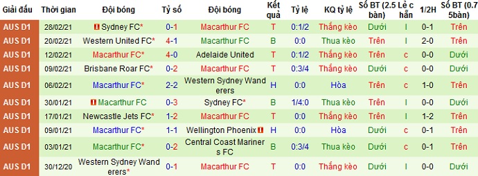 + Thống kê 10 trận gần nhất của Macarthur