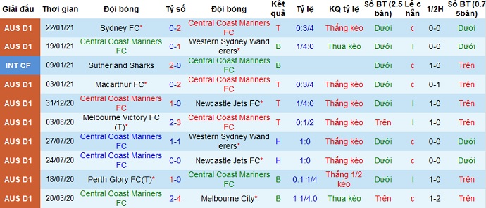 + Thống kê 10 trận gần nhất của Central Coast Mariners