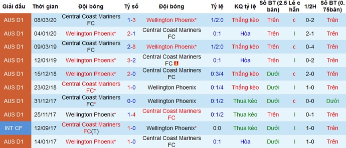 + Soi tỷ lệ kèo châu Á: Tuy đang đứng cao hơn đối thủ rất nhiều trên bảng xếp hạng cũng như được thi đấu trên sân nhà nhưng Central Coast Mariners vẫn bị đánh giá là đội cửa dưới bởi trong cả 5 lần đối đầu gần nhất thì Wellington Phoenix giành chiến thắng trong cả 5 lần.
