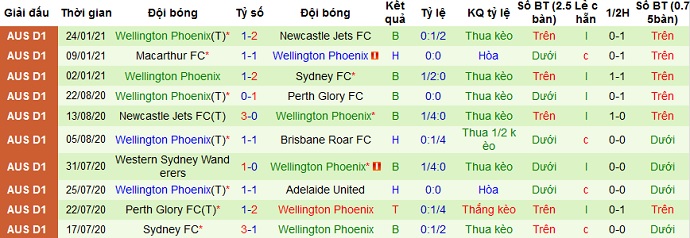 + Thống kê 10 trận gần nhất của Wellington Phoenix