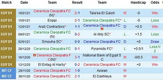 + Soi tỷ lệ kèo tài xỉu: Liên tiếp 6 trận gần nhất của El Gouna đều khép lại với tối đa chỉ 2 bàn thắng được ghi. Trận sân nhà gần đây của Ceramica Cleopatra chỉ có 1 bàn.