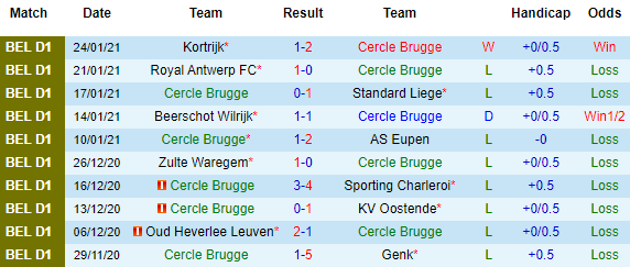+ Thống kê 10 trận gần nhất của Cercle Brugge