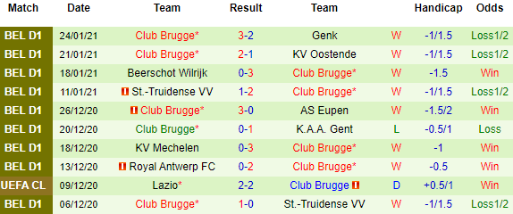 + Thống kê 10 trận gần nhất của Club Brugge