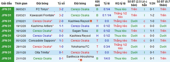 + Thống kê 10 trận gần nhất của Cerezo Osaka