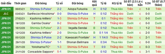 + Thống kê 10 trận gần nhất của Shimizu S-Pulse
