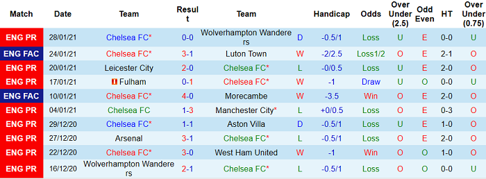 - Thống kê 10 trận gần nhất của Chelsea