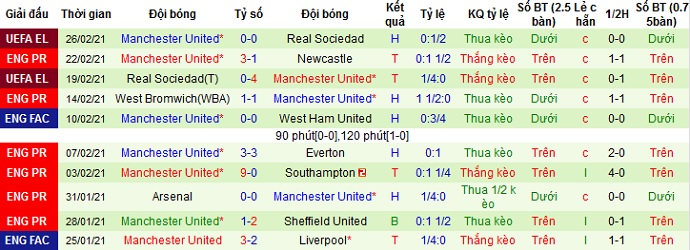 Mới đây Man Utd chỉ có được trận hòa không bàn thắng với Sociedad ngay trên sân nhà tại Europa League. Tuy nhiên chừng đó là đủ để Man Utd đi tiếp vào vòng 1/8 sau khi đã thắng 4-0 ở lượt đi và họ sẽ đụng độ AC Milan. Hiện tại Man Utd vẫn đang bất bại trong 7 trận gần nhất nhưng cũng chỉ có 4 trận thắng và để hòa 3 trận.