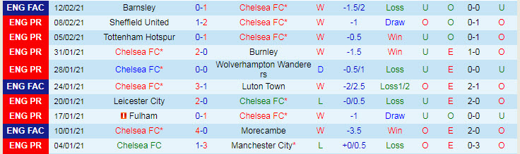 + Thống kê 10 trận gần nhất của Chelsea