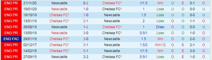 Phong độ và thống kê đối đầu Chelsea - Newcastle gần đây:
