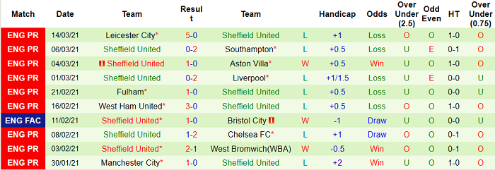 - Thống kê 10 trận gần nhất của Sheffield United