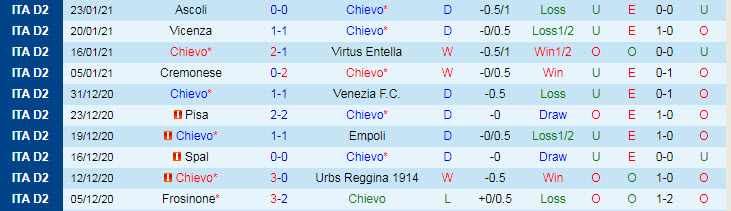 + Thống kê 10 trận gần nhất của Chievo