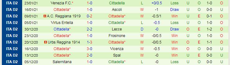 + Thống kê 10 trận gần nhất của Cittadella