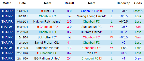 Xét trên góc độ danh tiếng, Chonburi tỏ ra nhỉnh hơn so với đối thủ. Từng có thời điểm Chonburi thuộc nhóm những CLB mạnh nhất nhì xứ chùa vàng. Nhưng ở mùa này thì Chonburi chỉ còn là cái tên trung bình yếu và thứ hạng hiện tại của họ đã phản ánh điều đó.