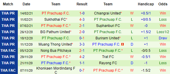 + Lịch sử đối đầu Chonburi vs Prachuap