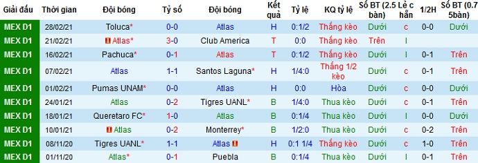 + Soi tỷ lệ kèo châu Á: Tuy đứng dưới đối thủ trên bảng xếp hạng nhưng có được lợi thế sân nhà nên Club Atlas vẫn được đánh giá là đội cửa trên tuy kèo chấp chỉ là -0,25.