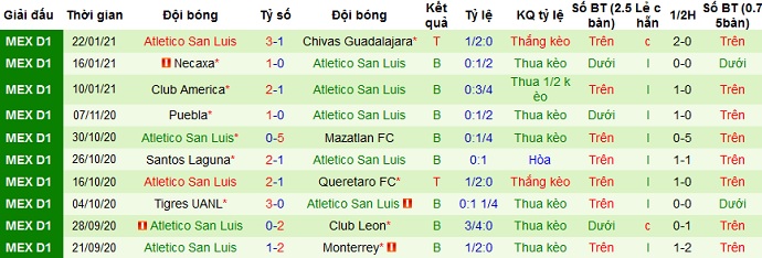 Trong khi đó Atlético San Luis ở giai đoạn lượt đi chỉ đứng bét bảng xếp hạng của giải đấu. Thế nhưng hiện tại đội bóng đang đứng thứ 14 của giai đoạn lượt về khi có được 3 điểm sau 3 vòng đầu tiên.