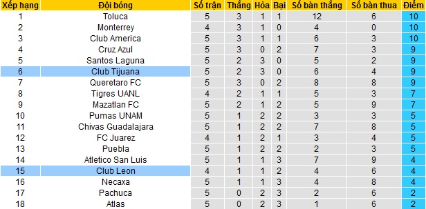Trong khi đó Club León đang là đương kim vô địch của giai đoạn lượt đi, nhưng hiện tại đội bóng lại chỉ đứng thứ 15 trên bảng xếp hạng. Với 4 điểm có được sau 4 vòng đầu tiên, Club León đang bằng điểm với 2 đội khác và cũng chỉ hơn 2 đội cuối bảng có 2 điểm.
