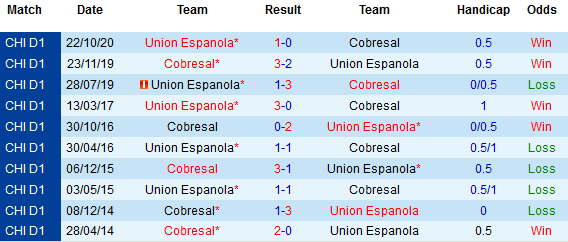 + Lịch sử đối đầu Cobresal vs Union Espanola