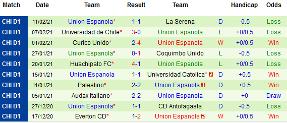 Tuy nhiên, với hoàn cảnh hiện tại, khả năng cán đích trong nhóm 2 đội dẫn đầu rất ít khiến Union Espanola đang bị đánh giá thấp ở chặng đường còn lại của mùa giải năm nay. Chỉ số châu Á đang xuất hiện trên sàn giao dịch cho thấy tín hiệu đáng lo ngại dành cho đội khách.