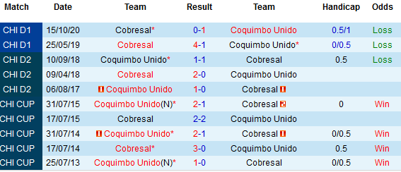 + Lịch sử đối đầu Coquimbo Unido vs Cobresal
