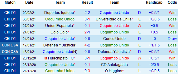+ Thống kê 10 trận gần nhất của Coquimbo Unido
