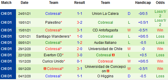 + Thống kê 10 trận gần nhất của Cobresal