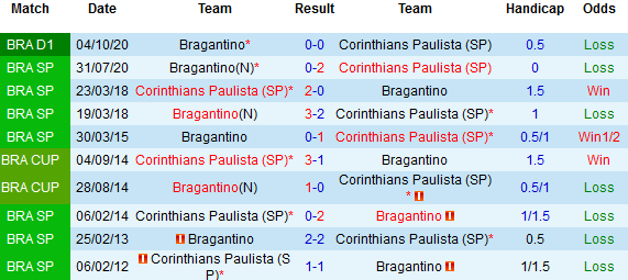 + Lịch sử đối đầu Corinthians vs Bragantino