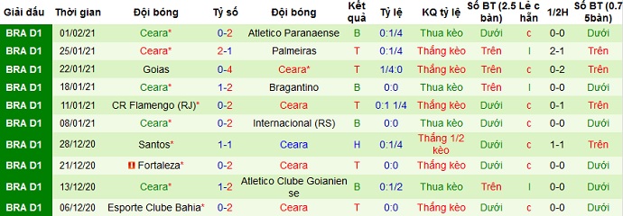 Thành tích của Ceará có tốt hơn đôi chút khi ở 5 trận gần nhất đội bóng có được 3 trận thắng, để thua 2 trận. Tuy nhiên thành tích sân khách của Ceará lại đang rất tốt khi bất bại trong cả 6 lần du đấu gần nhất với 5 trận thắng và chỉ để hòa 1 trận.