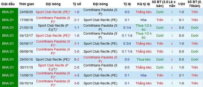 Tỷ lệ kèo Corinthians vs Sport Recife