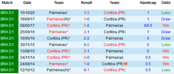 + Lịch sử đối đầu Coritiba vs Palmeiras