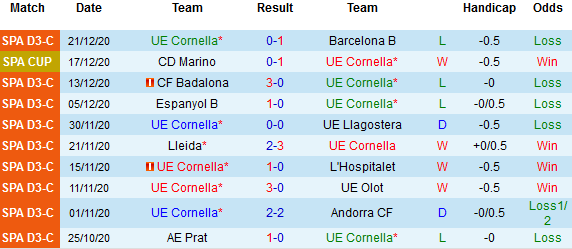 + Soi tỷ lệ kèo châu Á: Ngay cả khi chơi ở giải Hạng 3, Cornella cũng không phải địa chỉ đáng tin cậy dành cho nhà đầu tư với 4 trong 5 trận gần đây đều thua kèo. Trên sân nhà, đại diện Catalan cũng thất bại về chỉ số trên 4 trong 6 lần tiếp đón các đối thủ.