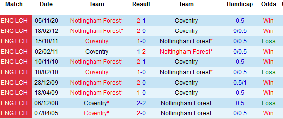 + Lịch sử đối đầu Coventry vs Nottingham