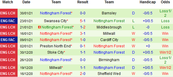 + Thống kê 10 trận gần nhất của Nottingham