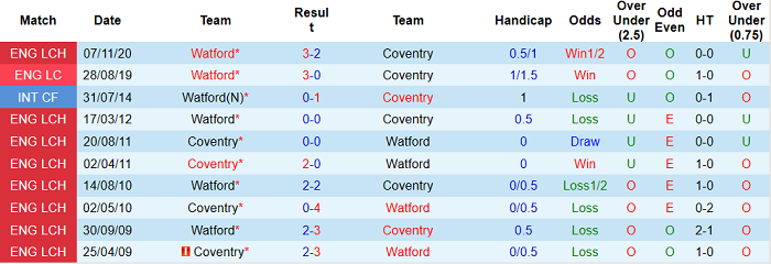 Tỷ lệ kèo Coventry vs Watford