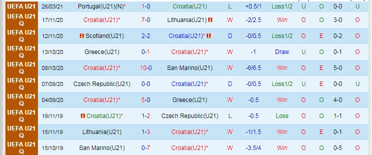 + Thống kê 10 trận gần nhất của Croatia U21
