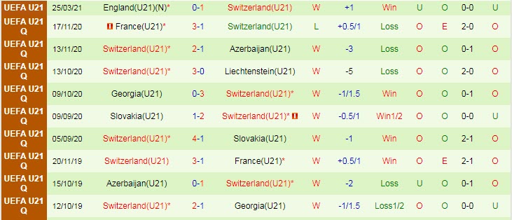 + Thống kê 10 trận gần nhất của Thụy Sỹ U21