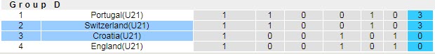 Bảng xếp hạng giải U21 châu Âu (bảng D)