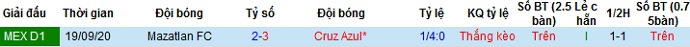 Tuy nhiên phong độ của Cruz Azul vẫn đang rất tốt trong khi thành tích sân khách của Mazatlán lại rất tệ nên chọn cửa trên vẫn hoàn toàn có cơ sở và có phần hợp lý.