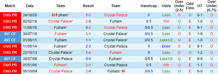 Tỷ lệ kèo Crystal Palace vs Fulham