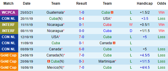 + Soi tỷ lệ kèo tài xỉu: Handicap khách chấp 2 1/4 mà tài xỉu chỉ là 3 1/4 thì khả năng bùng nổ bàn thắng không được đánh giá cao. Nên biết rằng 3/4 trận gần đây của Cuba và 2 lần đối đầu mới nhất giữa đôi bên đều có không quá 2 lần lưới rung.