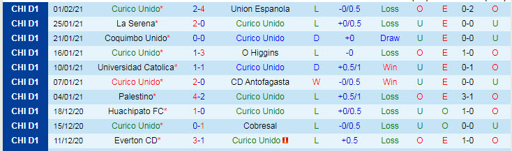 + Thống kê 10 trận gần nhất của Curico Unido