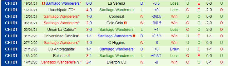 + Thống kê 10 trận gần nhất của Santiago Wanderers