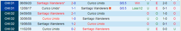Phong độ và thống kê đối đầu Curico Unido - Santiago Wanderers gần đây:
