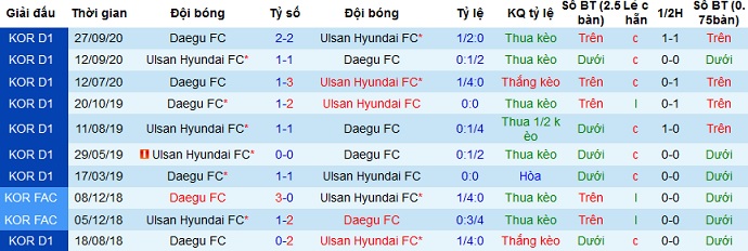 Tỷ lệ kèo Daegu FC vs Ulsan Hyundai