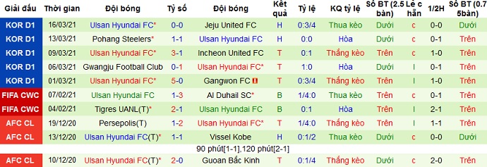 + Thống kê 10 trận gần nhất của Ulsan Hyundai