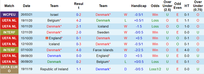 - Thống kê 10 trận gần nhất của Đan Mạch