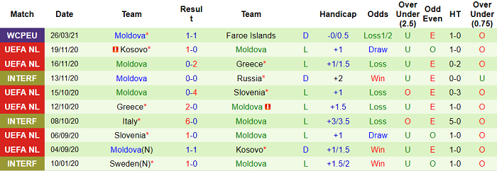 - Thống kê 10 trận gần nhất của Moldova