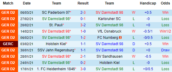 + Thống kê 10 trận gần nhất của Darmstadt