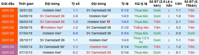 + Lịch sử đối đầu Darmstadt vs Holstein Kiel