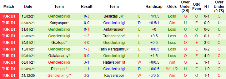 + Thống kê 10 trận gần nhất của Genclerbirligi